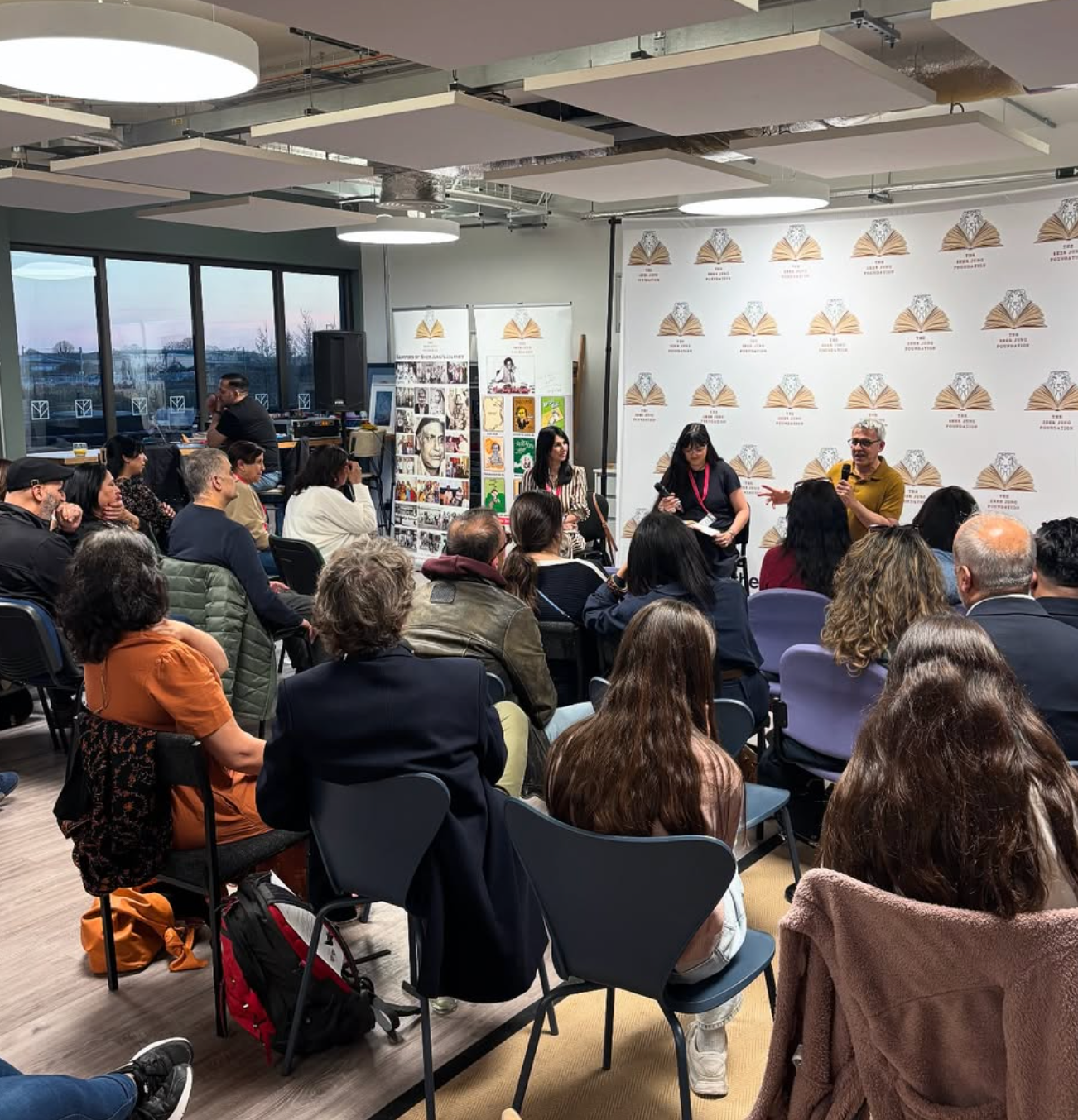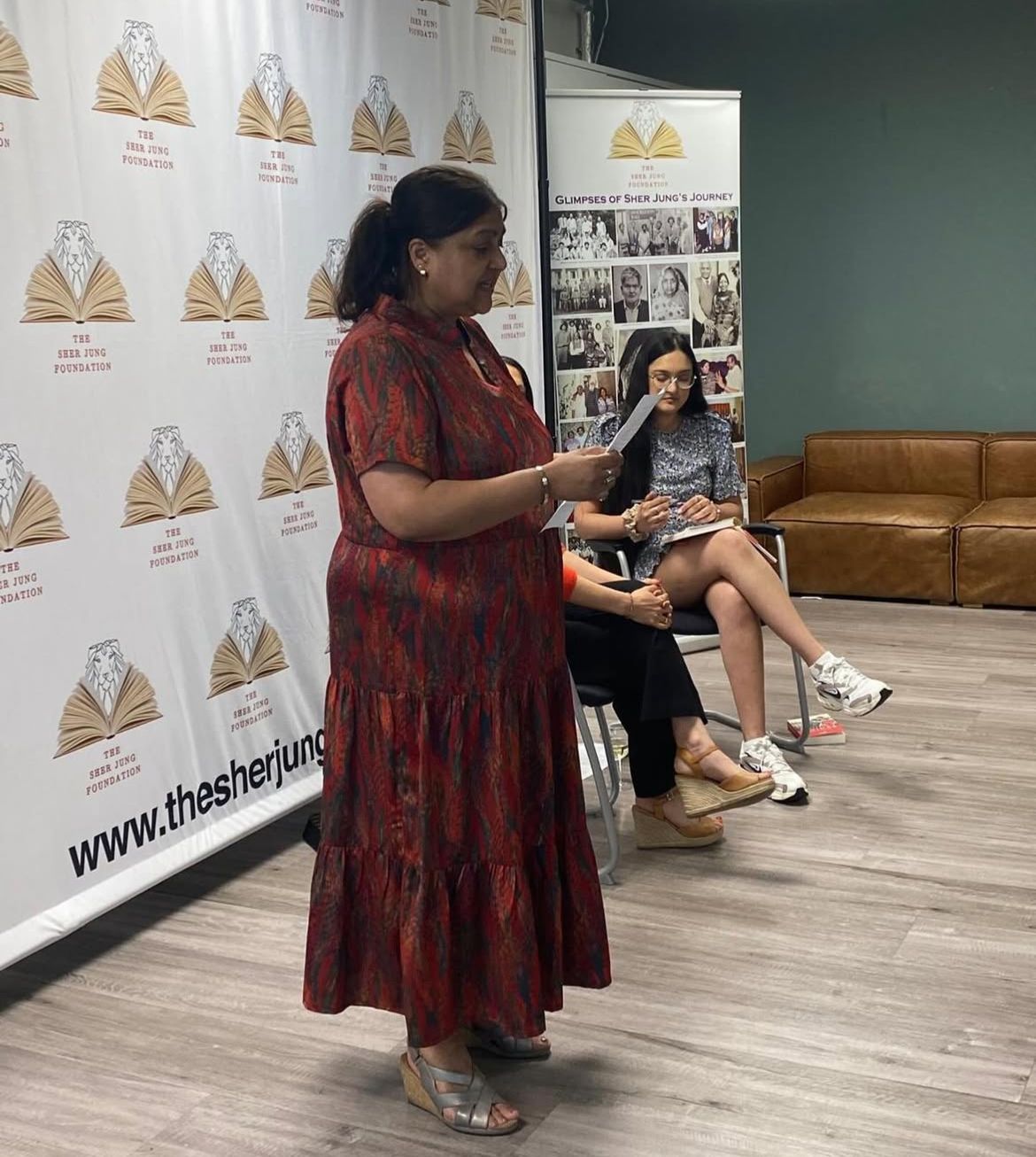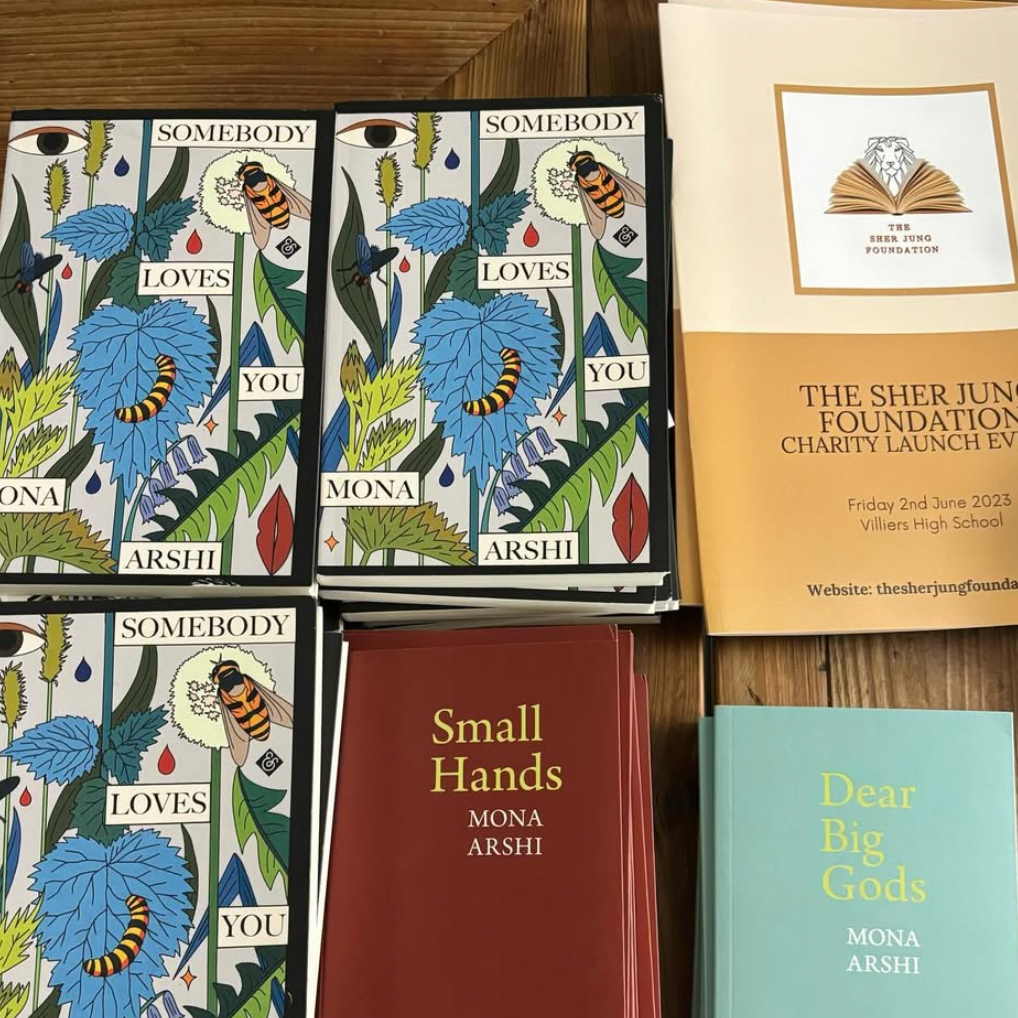 The first ever SJF Author Talks took place at Parkside Yards in Southall, and was kicked off by The Sher Jung Foundation’s own Mona Arshi, an acclaimed human rights lawyer-turned-poet who’s authored two poetry collections, ‘Small Hands’ and ‘Dear Big Gods’. In 2021, Mona published her debut novel ‘Somebody Loves You’, which was shortlisted for a number of awards. Mona’s poems and interviews have been published in The Times, The Guardian, Granta and The Times of India, as well as displayed on the London Underground. In 2020, she was appointed Honorary Professor at the University of Liverpool and is currently a fellow in creative writing at Trinity College, Cambridge.